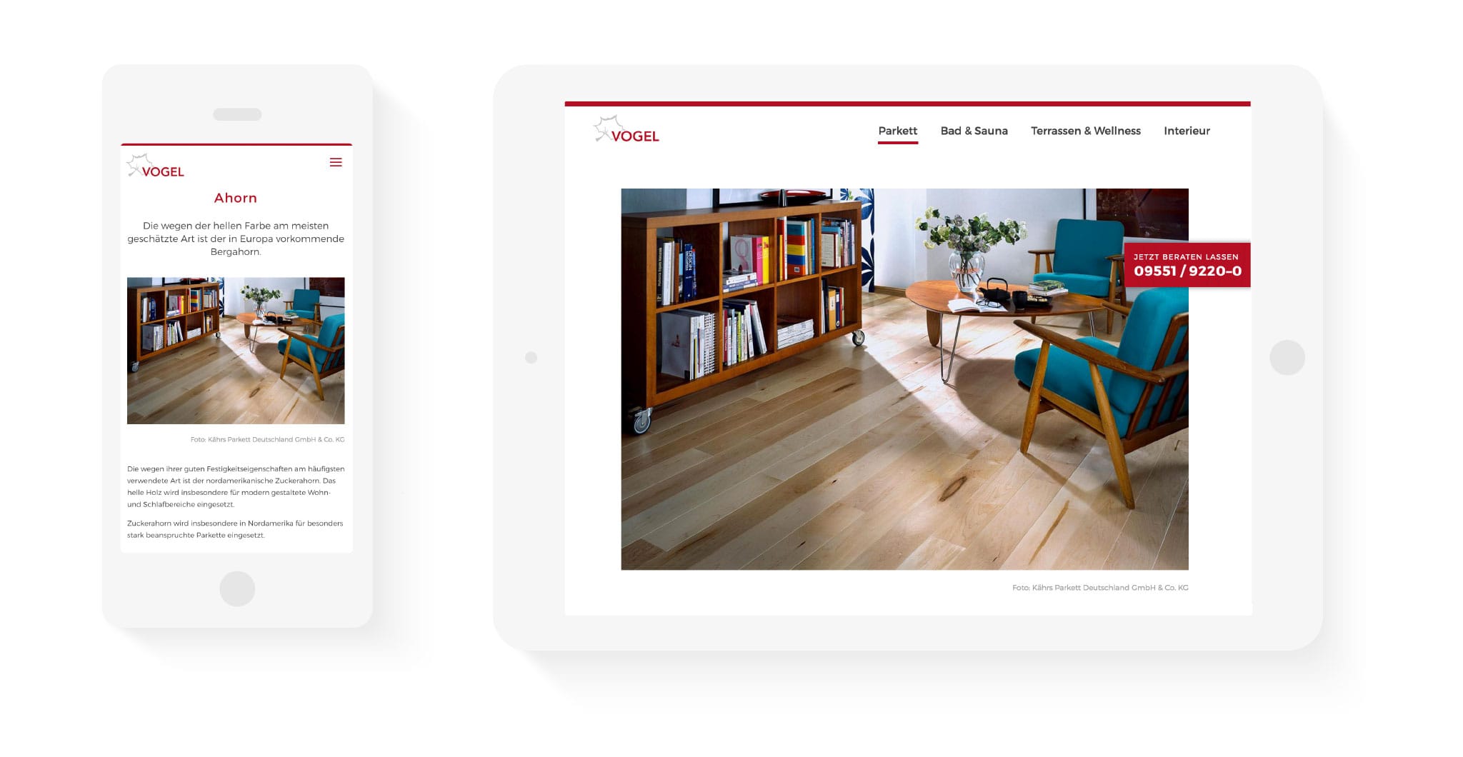 Die Firma Holz Vogel verbindet exzellentes Handwerk mit Erfindergeist. Sie plant, konstruiert und fertigt mit höchster Präzision alles, was sich im und am Haus aus Holz machen lässt – und auch die Dinge, von denen man glaubt, sie ließen sich nicht machen: Durch spezielle aus dem Bootsbau bekannte Techniken, baut Holz Vogel auch Duschen oder komplette Bäder aus Holz. Die von Rezo entwickelte Website zeigt die ganze Bandbreite des Traditionsbetriebs aus Franken.